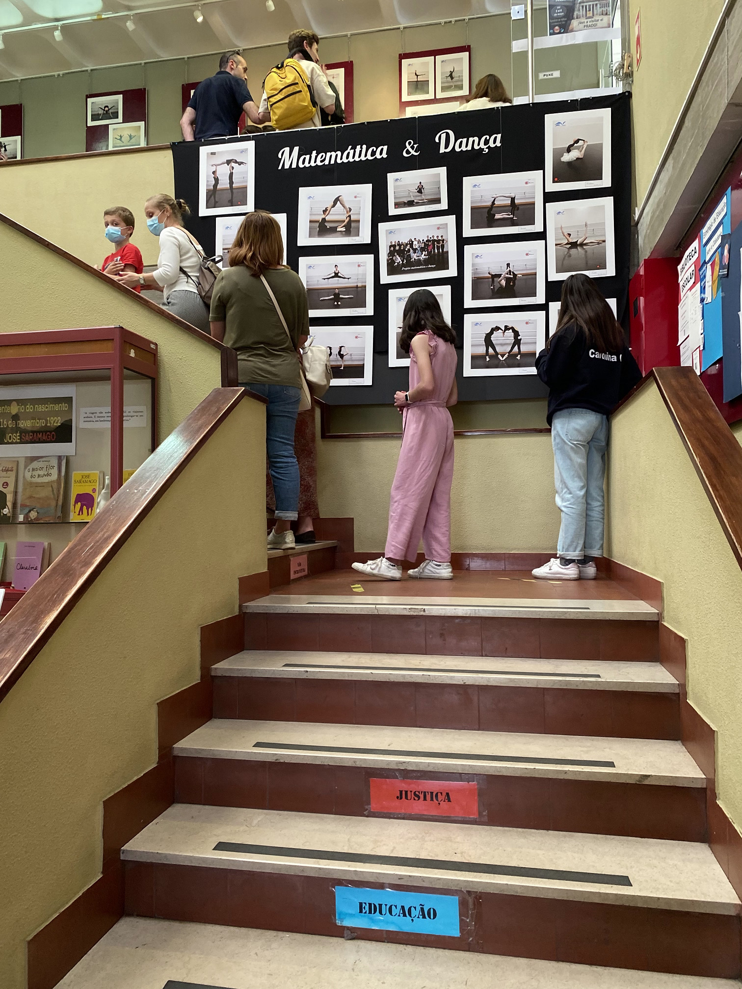 Foi inaugurada, no dia 12 de Maio, a exposição fotográfica “Matemática e Dança”, no polivalente da Escola, realizada pelos alunos da turma 11º C, no âmbito da disciplina de Matemática A, numa parceria com o Conservatório Internacional de ballet Annarella Sanchez. Nas 40 fotografias em exibição, podem ser observadas figuras geométricas e outros conceitos matemáticos na dança. Este projeto contou com o apoio da Biblioteca Escolar e do fotógrafo Bruno Coutinho (Foto MONUMENTAL).