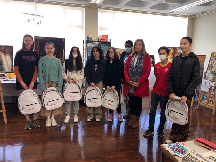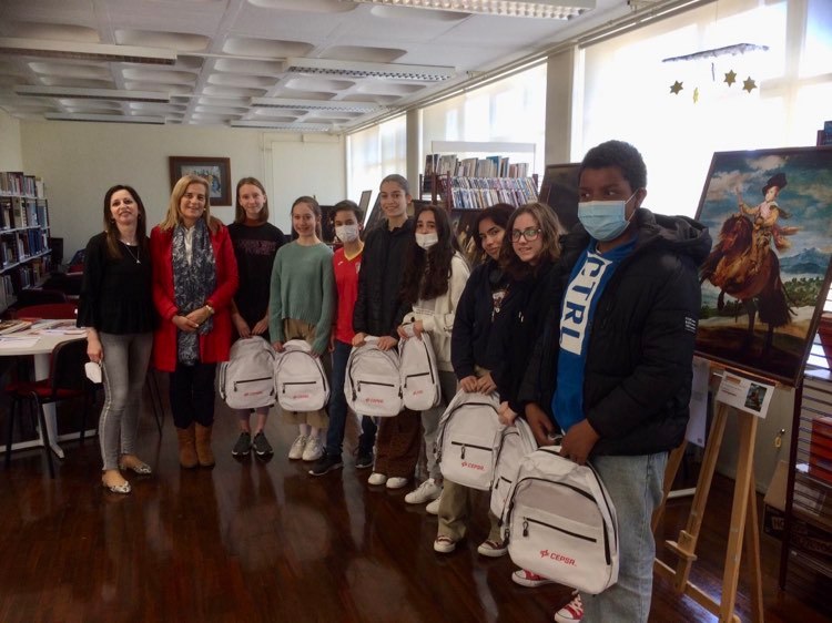 No dia 04 de maio, foi realizada, na biblioteca da nossa escola, uma pequena cerimónia de entrega de prémios aos alunos que participaram no concurso nacional “Premios Pilar Moreno 2022 – Pinta tu España”. Apesar de os seus trabalhos não terem sido premiados a nível nacional, as docentes de Espanhol fizeram questão de valorizar o empenho e a dedicação destes discentes na elaboração dos seus cartazes, tendo os nove alunos participantes (8 do 3º ciclo e 1 do ensino secundário) recebido uma mochila e uma caneta, gentilmente, oferecidas pela Cepsa Gás.