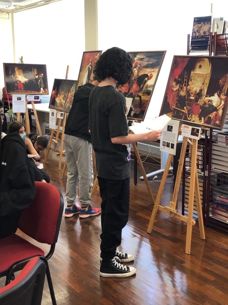 De 02 a 06 de maio, foi possível visitar, na biblioteca da nossa escola, a exposição “¡Ven al Museo del Prado!”, atividade dinamizada pelas docentes de Espanhol. Estiveram expostas, neste espaço, vinte réplicas do Museu do Prado, cedidas pela Consejería de Educación de la Embajada de España em Portugal. Depois de visitarem a exposição com as respetivas professoras de Espanhol, todas as turmas tiveram a possibilidade de aplicar os conhecimentos adquiridos através da realização de um kahoot em sala de aula. Além do interesse e entusiasmo demonstrados pelos discentes, é também de realçar a visita à exposição de outras turmas da escola com professores das diferentes áreas e disciplinas.! Foi uma atividade transversal e a repetir, certamente!