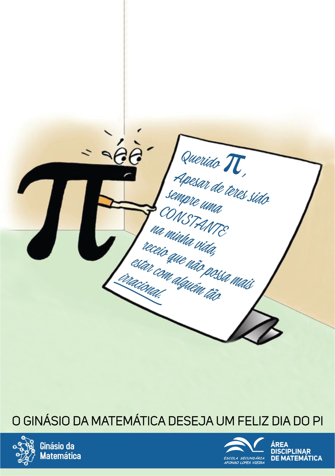 Ontem, Dia do Pi e Dia Internacional da Matemática, o Pi foi rei na Esalv. Palpitou-se, viajou-se pelo interior do Pi, as portas foram engalanadas com Pi-adas, os professores e auxiliares de ação educativa responderam a perguntas de Matemática em troca de um saboroso Pi... E pis também não faltaram aos alunos do 7º, 8º e 9º anos que receberam alguns alunos de 12º ano nas suas aulas e responderam aos desafios colocados.