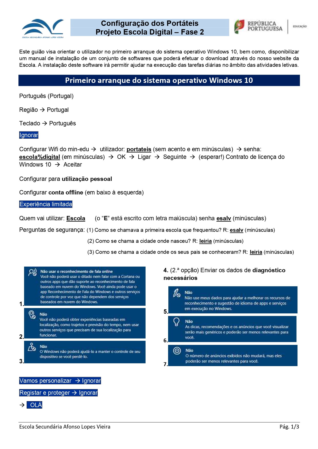 Configuração dos Portáteis do Projeto Escola Digital – Fase 2: Transferir tutorial em PDF