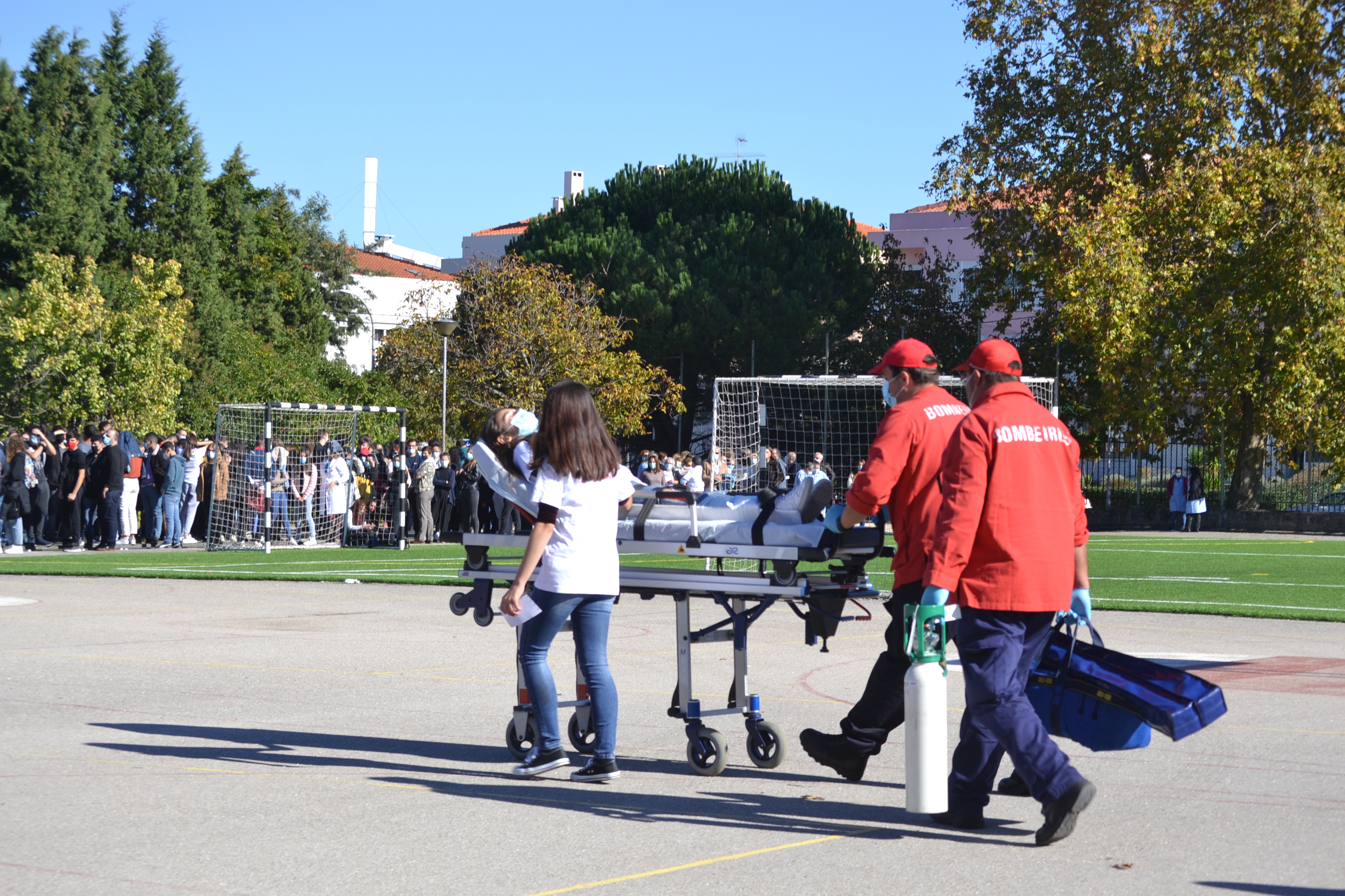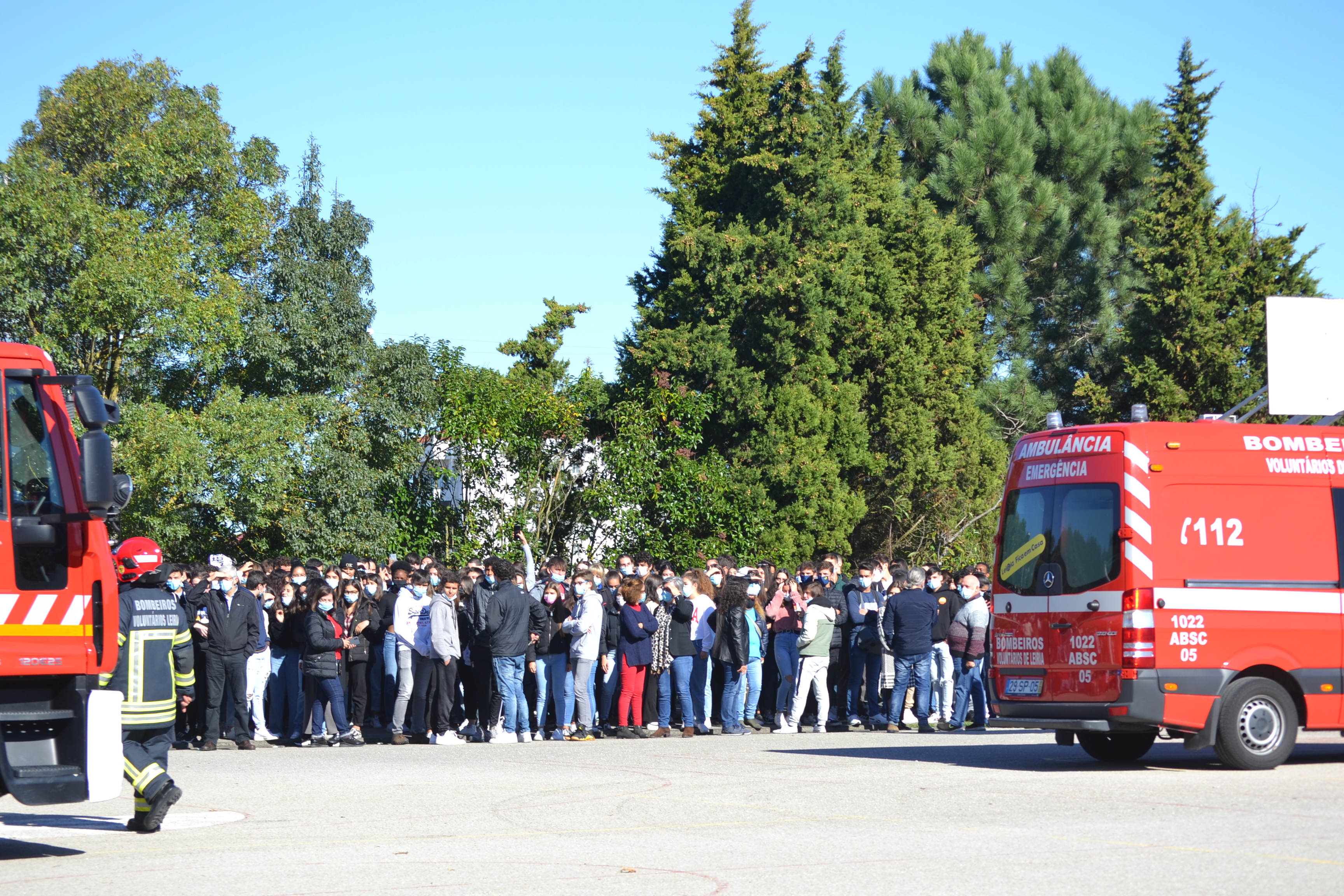 Na Sexta feira, dia 05/11, a terra tremeu na ESALV, às 11.05H. “Baixar, proteger e aguardar” foram as primeiras ações. Seguiu-se a evacuação, respeitando as regras do Plano de Emergência da nossa escola. Foi rápida a deslocação até ao local de concentração. O Serviço Municipal de Proteção Civil acompanhou todo o exercício. Os Bombeiros Voluntários de Leiria, Bombeiros Sapadores de Leiria e a P.S.P. responderam à chamada de emergência. Com vários meios realizaram toda a verificação nos edifícios e zona envolvente, assistiram dois alunos feridos e resolveram a pequena explosão no laboratório de química. A reportagem fotográfica ficou a cargo de alunos do CPT de Comunicação e Marketing.
