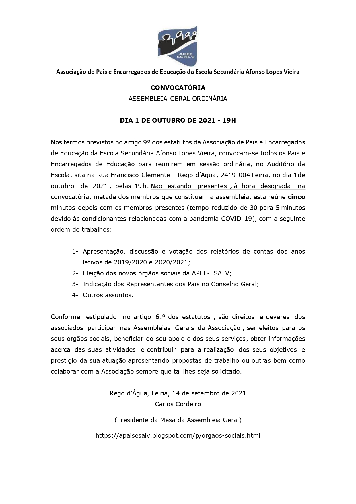 Escola Secundária Afonso Lopes Vieira (400725) Rua Francisco Clemente - Rego d'Água, 2419-004 Leiria | direcao@esalv.edu.pt | secretaria@esalv.edu.pt | 244880000 | NIF: 600000788
